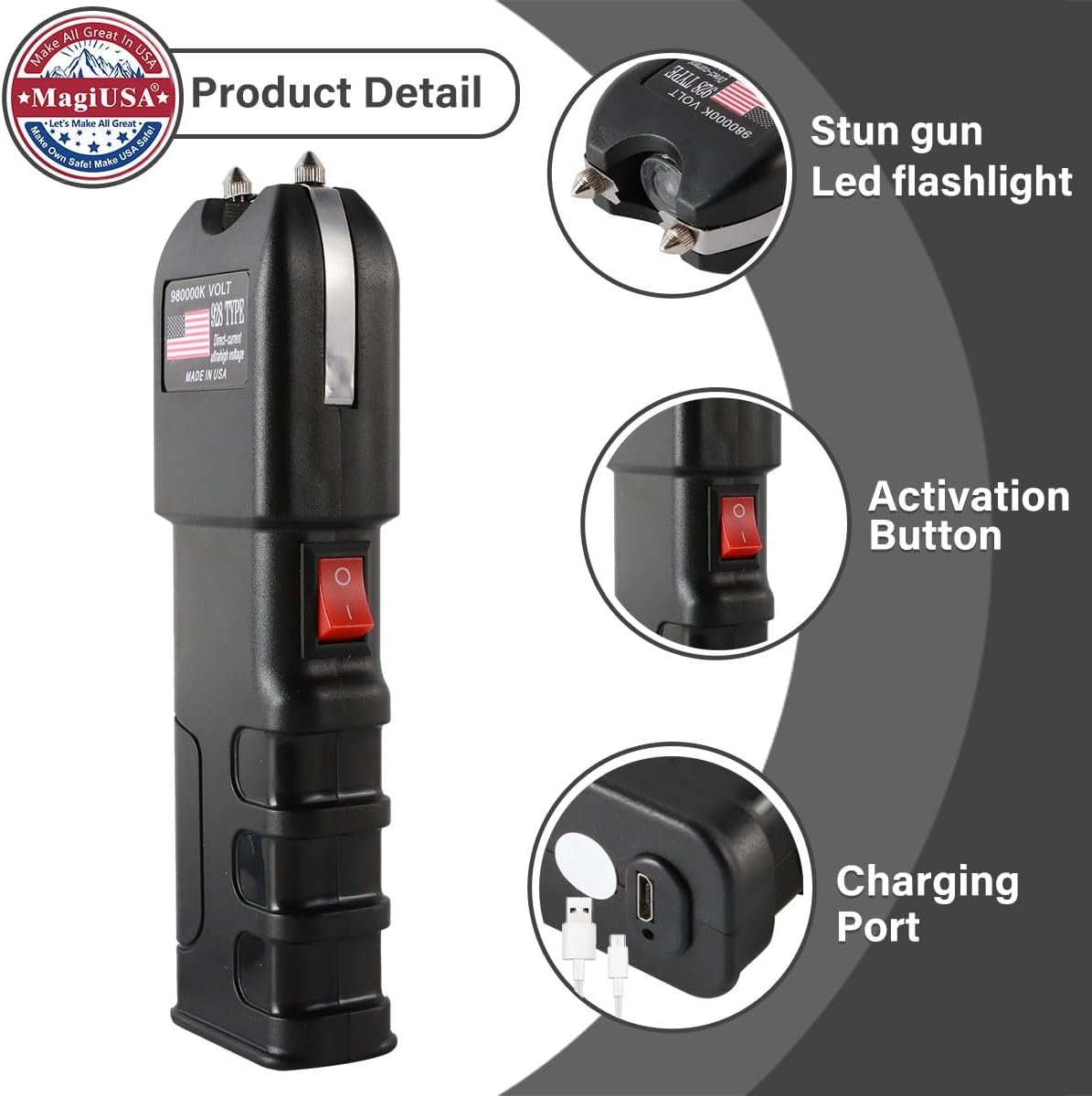 MagiUSA is a leading manufacturer of stun guns, prioritizing safety keychain sets and self-defense kits. Our self-defense weapons are known for their innovative design, combining cutting-edge technology with user-friendly features. These trailers for self-defense are crafted with durability in mind, providing individuals with a reliable means of protection. MagiUSA’s commitment to quality and effectiveness ensures and flashlight gun keychain is a reliable option for personal safety.