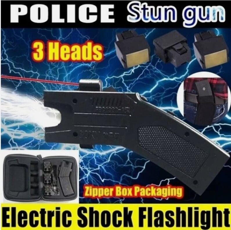 Item description from the seller Self-defense: This package includes (1) Host Stun Gun, (3) Replaceable cartridges, (1) Charger, (1) Holster, and (1) Instruction. Features: Includes a built-in high visibility flashlight. Range: 15 ft. (4.6m) range Shock voltage: 8000KV Arc penetration effect: about 1 inch of clothes